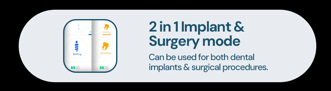 - 2 in 1 Implant & Surgery mode: Can be used for both dental implants & surgical procedures.