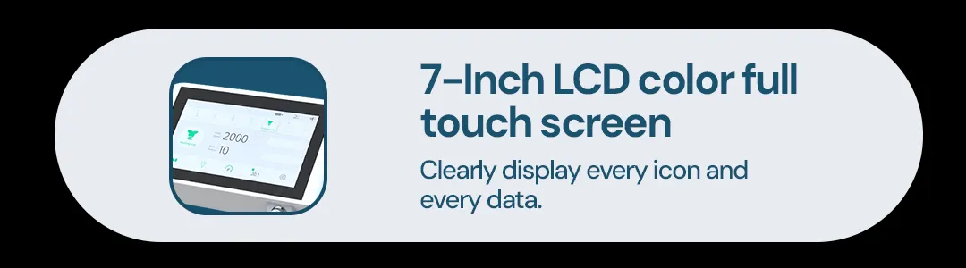- Full touch 7” big screen, highly illuminated, designed for easy cleaning & cross infection control.