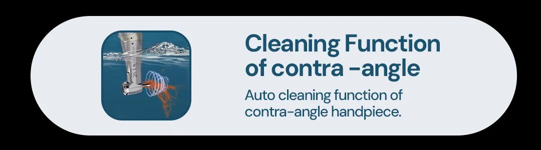 - Cleaning Function of contra -angle: Auto cleaning function of contra-angle handpiece.