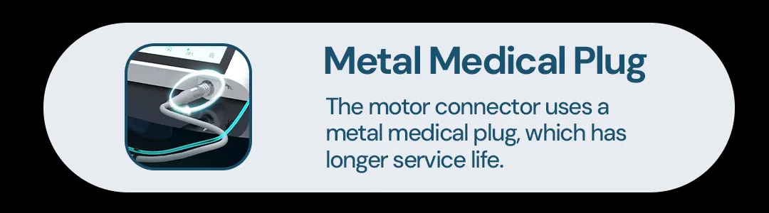 - Metal Medical Plug: The motor connector uses a metal medical plug, which has longer service life.